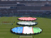 赛前进行奏唱国歌仪式,大战即将打响