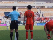 乌兹别克斯坦U23球员倒地后故意手球,主裁判未出牌