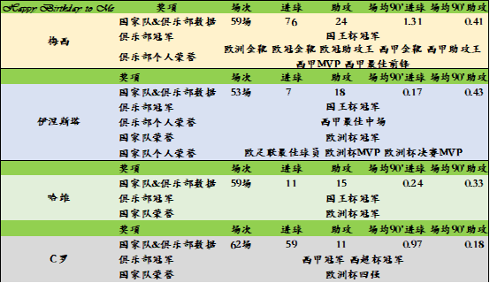 注4:本文所有球员的荣誉资料来自于Wikipedia,所有球员的数据资料来自于Transfer Market。Transfer Market是将造乌龙,打门被队友补射等算入助攻数据的,所以助攻数据可能和某些机构略有不同。