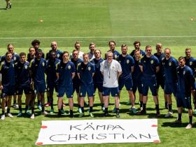 瑞典国家队晒大合影祝福埃里克森:加油,克里斯蒂安!