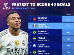 42场,姆巴佩是90年以来仅次于C罗第二快达成西甲40球的球员