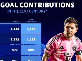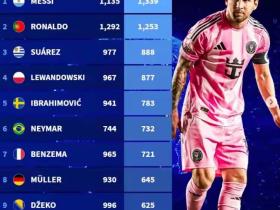 德转列21世纪参与进球榜:梅西1339球居首,C罗1253球第二