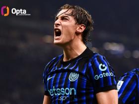 20岁231天,皮奥是国米近60年意甲对阵尤文进球第二年轻的球员