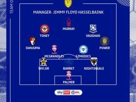 EFL周最佳阵容:主帅哈塞尔巴因克,穆雷和托尼入选