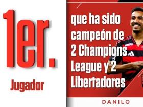 打入制胜球,达尼洛成历史首位两夺欧冠+两夺解放者杯的球员