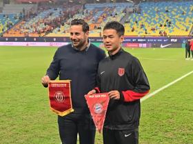 拜仁名宿皮萨罗到访成都蓉城主场,与甘锐互换队旗