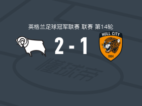 德比郡2-1赫尔城,萨尔韦森、卡尔顿-莫里斯破门