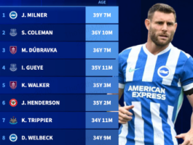 英超本赛季最年长出场球员TOP10:米尔纳39岁零7个月居首