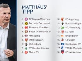 马特乌斯预测德甲排名:拜仁夺冠,多特次席,法兰克福第三