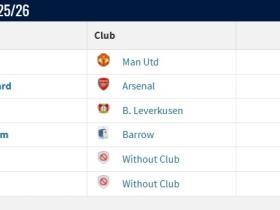 赛季俱乐部上场首发进球助攻黄牌红牌替补