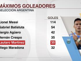 35球追平克雷斯波,劳塔罗升至阿根廷队史射手榜第四