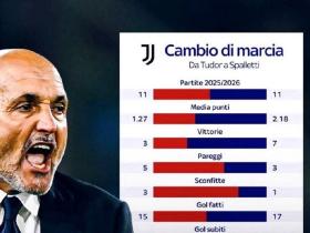 立竿见影,斯帕莱蒂接手后尤文场均分、成绩、净胜球全面提升