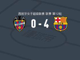 巴塞罗那女足4-0大胜莱万特女足,亚历克西娅-普特利亚斯点射破门,克劳迪娅-皮纳1射1传