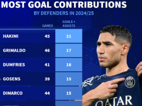 德转列本赛季后卫参与进球榜:阿什拉夫居首,格里马尔多第二