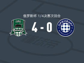 克拉斯诺达尔4-0大胜奥伦堡加索维克,尤巴尔、若昂-巴基破门