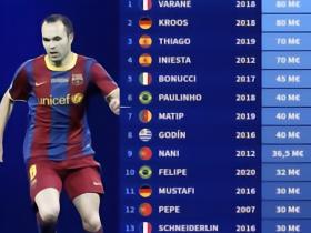 2024年退役球员巅峰身价:瓦拉内、克罗斯8000万欧居首