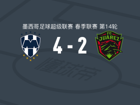 蒙特雷4-2华雷斯,华金-莫希卡破门,贝尔泰拉梅传射