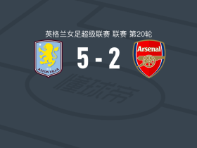 阿斯顿维拉女足5-2大胜阿森纳女足,查茜蒂-格兰特两球,戴利建功