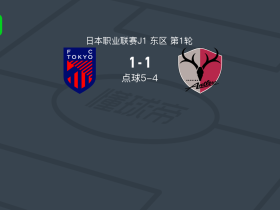 90分钟战报:FC东京1-1战平鹿岛鹿角,双方进入点球大战