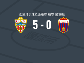 阿尔梅里亚5-0血洗埃登斯,路易斯-苏亚雷斯两球,吉列尔梅-格德斯破门