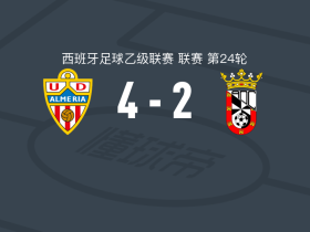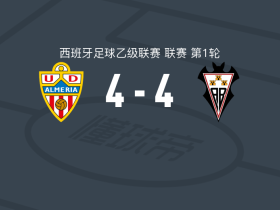 阿尔梅里亚4-4阿尔瓦塞特,奥古斯-梅迪纳先拔头筹,巴普蒂斯唐扳平比分