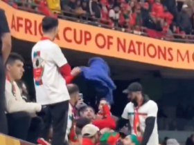 摩洛哥球迷本想记录绝杀点球却看到迪亚斯失点,笑容瞬间消失