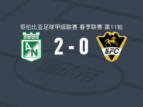国民竞技2-0利亚内罗斯取哥伦甲3连胜,乌里韦建功,贝略锁定胜局
