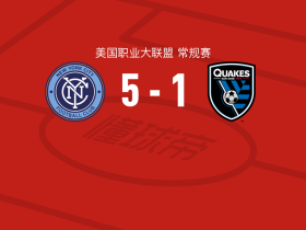 纽约城5-1大胜圣何塞地震取美职联5连胜,阿德里安-马丁内斯帽子戏法,圣地亚哥-罗德里格斯传射
