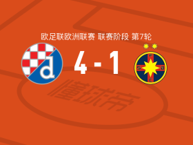 萨格勒布迪纳摩4-1大胜布加勒斯特星,贝廖梅开二度,库伦诺维奇破门