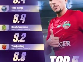 亚冠官方公布本轮亚冠精英球员评分TOP5:颜骏凌8.8分排第4