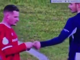 拿来吧你!柏林赫塔球员一把抢过对手教练给球员的战术小纸条