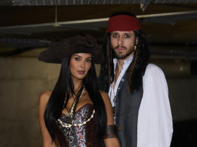 参加万圣节派对,鲁本-迪亚斯和女友化身海盗