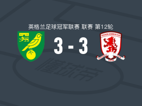 诺维奇3-3米德尔斯堡,博尔哈-赛恩斯双响,康韦梅开二度