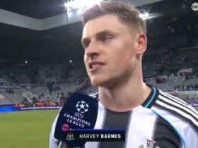 哈维-巴恩斯:替维萨感到开心,我们这场比赛逼抢做得很好