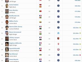 法甲身价排行:内维斯、维蒂尼亚1.1亿欧元并列第一,大巴黎包揽前十