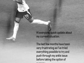 索兰克自宣接受脚踝手术:希望我能在不久的将来回到球场