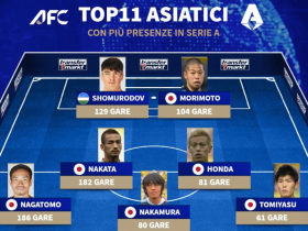 意甲出场数最多的亚洲球员11人阵容:长友佑都、中田英寿领衔