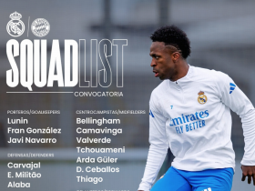 皇马公布战拜仁名单:姆巴佩、维尼修斯领衔,贝林厄姆在列