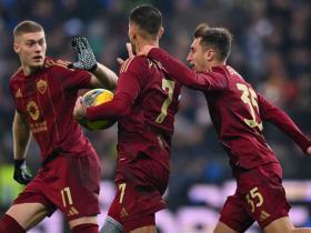 罗马2-1逆转乌迪内斯迎客场首胜,佩莱格里尼、多夫比克点射