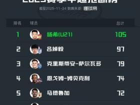 2025中超抢断榜:西海岸杨希以105次居首,英博吕焯毅排第二
