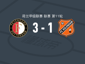 费耶诺德3-1福伦丹,上田绮世双响,斯泰恩破门