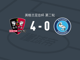 埃克塞特城4-0大胜韦康比流浪者,艾奇逊双响,韦勒姆破门