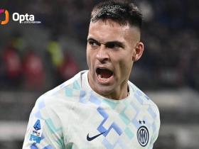 连续4轮进球,劳塔罗2025年意甲打入15球并列所有球员第1