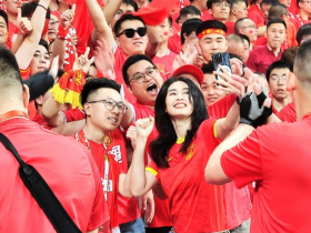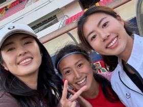 前女足门将赵丽娜现场助威,与中国球迷合影互动