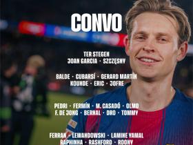 巴萨加泰德比大名单:莱万、亚马尔领衔,费兰、奥尔莫在列