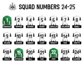 纽卡官宣新赛季号码:安东尼-戈登10号,刘易斯-霍尔20号