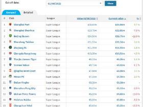 德国转会市场网2025年中超联赛身价年终例行更新今天完成