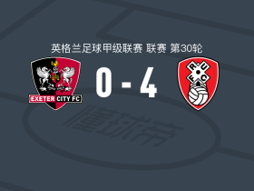 罗瑟汉姆4-0大胜埃克塞特城,麦克威廉斯1传1射,哈里-格雷破门