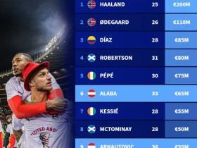 德转列将首次参加世界杯历史身价TOP10:哈兰德、厄德高前2