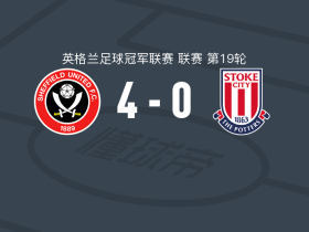 谢菲尔德联4-0大胜斯托克城,赛迪-佩克点射,班福德破门